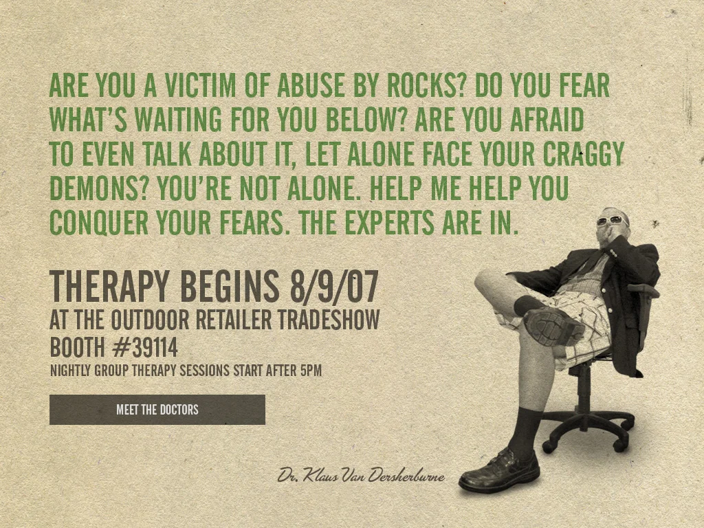 Splash pages were made in preparation for the Outdoor Retailer Tradeshow. Shred Ready’s tagline was “Because rocks hurt,” so we created the idea of letting us help you overcome your fear of rocks.