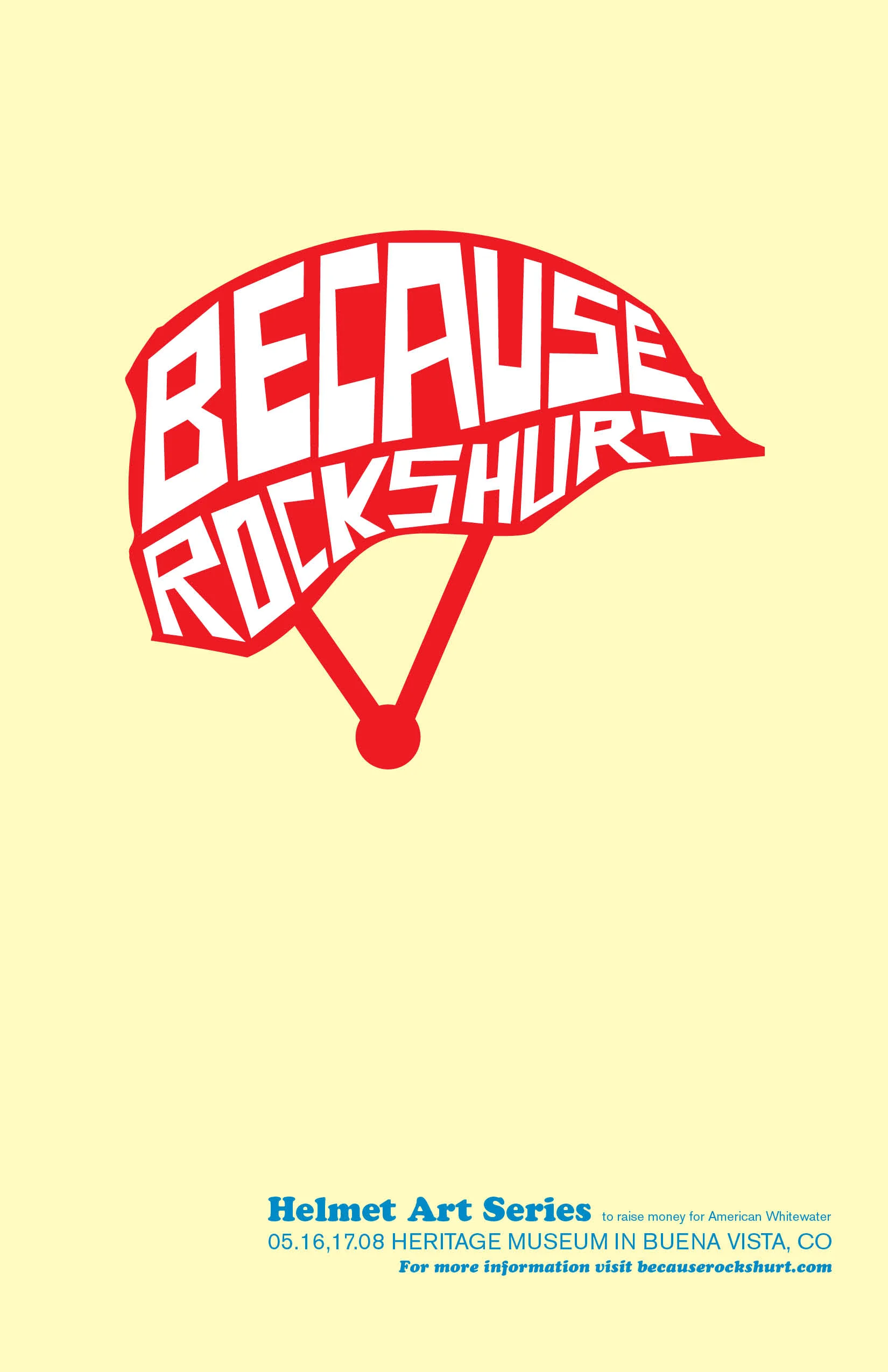 becauserockshurt.com was created out of a conversation about graphics for the new helmet. It’s a website that is dedicated to art on helmets. In order to find the perfect graphics for the new helmet and also a way to celebrate the launch of the new helmet we decided to send 50 helmets out to artists nationwide and have them create their own unique art on them. We planned a series of galleries throughout the next year at various artistic and kayaking driven events. Logos, t-shirts, screen printed posters and tons more were put together for these events. Sales from t-shirts and posters and portions of the helmets are all benefiting the American Whitewater Foundation.